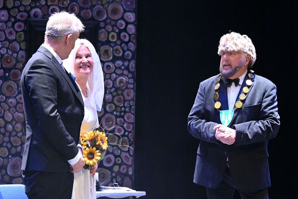 Vår badeglade ordførar er parodiert, og det opp til fleire gonger. Parodiert er også listetoppane Ingemar Bråten, Karin Hagen og Bjørn Magne Langkås, samt Senterpartiets Chase Alexander Jordal. Borgar Kaasa dukkar også opp i ei vilter utgåve av seg sjølv med ordførarkjede og rett til å vie folk.