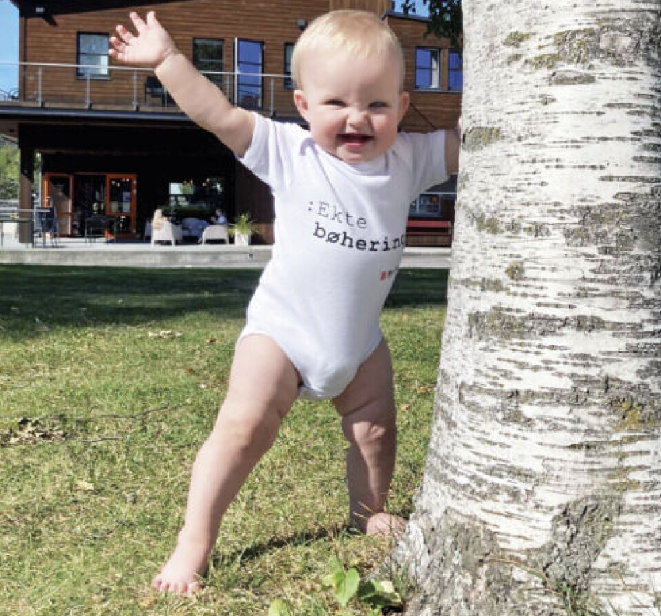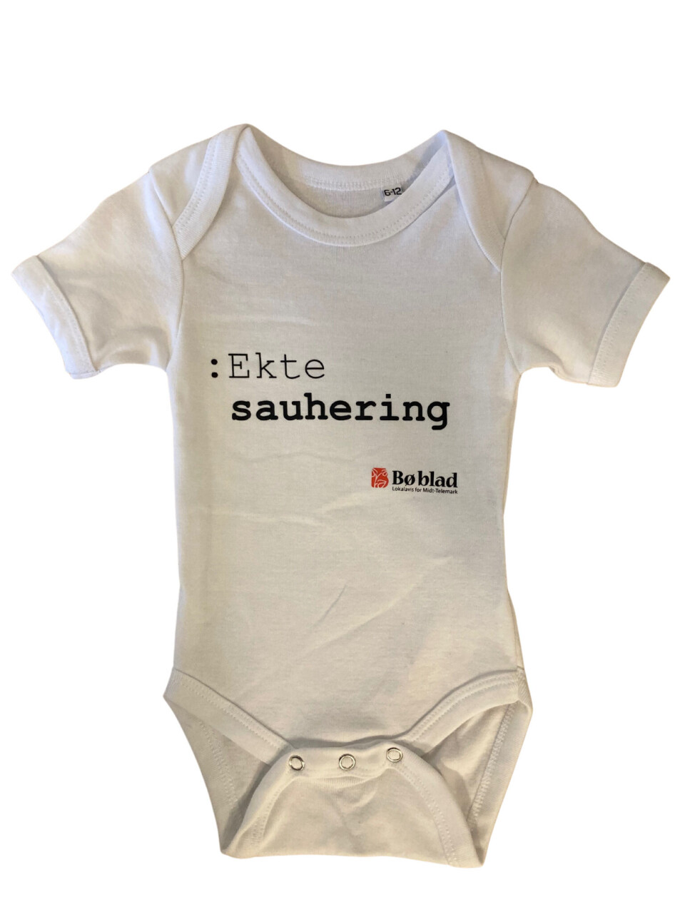 Babybody «Ekte sauhering». Str. 6-12 mnd. Økologisk bomull. Kr. 200,- («Ekte bøhering» er utseld)