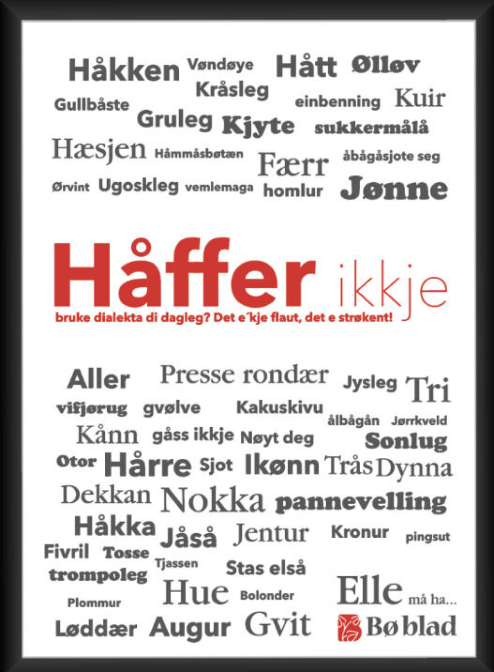 Dialektplakat 30×40 cm. Utan ramme kr. 200,- / med ramme kr. 300,-