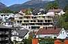 NYTT I BAKKEN: Eit av mange byggjeprosjekt i Bø sentrum. Her er det terrassehusa i Haugerudbakken som er under utvikling. Det store bygget gjev sentrum enda ein ny siluett. FOTO: Øystein AkselbergFOTO: Øystein Akselberg