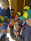 SKULEBESØK PÅ GARDEN: 49 spente elevar frå andre trinn på Bø skule var så heldige å få besøke garden Haugland i haust. Det blei ein spennande skuledag, der ungane fekk helse på og ha nærkontakt med både høner og grisar. Det blei òg tid til grilling og kos, og alle fekk seg caps frå Felleskjøpet. Her ser me Jarle Aleksi L. Pedersen som får halde høna Brynhild. FOTO: PrivatFOTO: Privat