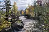 ELVEBRUS I FARGEPRAKT: Kor enn ein har snudd seg i Midt-Telemark dei siste vekene har ein blitt møtt med kaskadar av vakre fargar. Her frå Hørteelva den 16. oktober 2022. Til venstre skimtar ein Hørte Dampfarveri. FOTO: Kristin Ødegård VestgardenFOTO: Kristin Ødegård Vestgarden