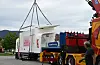 SOFTEN blir frakta VEKK: Då augsut var omme, blei Soften iskrembar frakta vekk av Kranringen frå Bø torg. Deleigar Hans Gunnerud Jørgensen er nøgd med årets sesong som varte frå mai til august. – Me har blitt tatt veldig godt imot av både lokalbefolkning og turistar, fortel han. FOTO: Anna Bugge