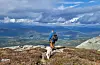 FINT I FJELLET: På denne årstida er det vakkert i fjellet, med fine fargar og gode temperaturar. Ein lesar har sendt oss dette bildet frå Lifjell, og viser ein turgåar på veg ned frå fjellet Himingen. Utsikta er mot Sauland. FOTO: Kristin Ødegård Vestgarden