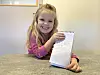 Astrid Marie (5) vil helst skrive namnet sitt sjølv når ho møter Bø blad. Det klarer ho med glans.