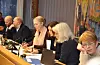 Midt-Telemark kommunestyre. f.v. Øystein Slettebø, Sp, Borgar Kaasa, Sp, varaordførar Ingebjørg Nordbø, MDG, ordførar Siri Blichfeldt Dyrland, Sp, kommunedirektør Åse Egeland, Mette Haugholt, Ap.