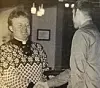 25 ÅR SIDAN: Asgeir Sele t.v. blir gratuelert som styreleiar for Jønnbu av de nye eigaren NKSS ved Pål O. Vadset.