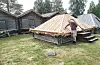 VIKTIG MØTESTAD: «Lappstaden» i Arvidsjaur ligg 200 meter frå den største av dei fem kyrkjene på staden. Eit av spira på det ruvande byggverket kan skimtas bak tretoppane. FOTO: PrivatFOTO: Privat