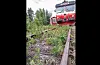 Ein av to motorar braut saman mellom Vilhelmina og Arvidsjaur og Rasmus må halda farten oppe når toga først er oppe i turtal. Det har gått tog på Inlandsbanan i snart 100 år og tilveksten i og utanom sporet har gode kår i dette klimaet. FOTO: PrivatFOTO: Privat