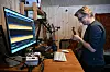 VERKTØY: Anders Erik Røine med verktøy han har bruka i prosjektet.