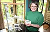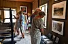 VELKOMEN: Mange møtte opp til opninga av sommarutstillinga på Hørte Dampfarveri. Her ønskjer Berit Kleiv velkomen inn. FOTO: Unni Buverud