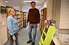 MANGE LÅNER: Biblioteksjef Tone Lie med lånar Bjørn Hallgeir Myrene.