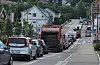 Asfaltering fører til lange køar i heile Bø sentrum