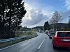 HELT STOPP: Køen er lang etter uhellet på riksveg 36.