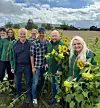 På Sisjord i Bø: Eit knippe representantar frå Senterpartiet på gardsbesøk i Bø, blant solsikkene langs Sisjordvegen i Bø. Dei som besøkte bonde Øystein Thoen Sisjord (i midten med caps) er: Torunn B. Kleiva, Siri Blichfeldt Dyrland, Olav Urbø, Tone Susanne Kvasjord, Borgar T. Kaasa og Åslaug Sem-Jacobsen.