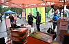 DYRSKU-STEMNING I BØ: Felleskjøpet sitt jubileumsarrangement i Bø i dag. Konsulent Kristin Hegna hadde rigga til utstilling med kraftfôr og plantekultur utanfor Felleskjøp-bygningen.