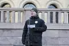 VED STORTINGET: Øyvind Fjeldseth frå NJFF heldt appell utanfor Stortinget på tysdag.