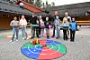 NOKRE AV LEIKANE: Elevane i elevrådet med nokre av leikane. Framme f.v. Alisa Kjenstadbakk Groven, Guro Kleiv Sollid, Eivind Kåsa, Eirik Otterholt Riseng, Vårin Listaul, Sigmund Tvinnereim Sanda, Simen Olai Sauar Tjønnås, Mari Riis Stenstad, Birk Skogen-Havrås. Bak rektor Venke Raundalen og Gregar Høydal og Cato Listaul som overrekte gåva frå Grendelaget.