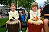 KOSA SEG PÅ TORGFESTIVAL: Systrene Ella Synnøve (7) og Olivia (5) Haugland hadde det veldig moro på John Trygves trommesirkel.