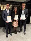 PRIS: Ellen Schrumpf, saman med Muhamed Tiro og Harald Dag Jølle, under prisutdelinga i Trondheim.