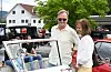 Fargerikt og folksamt på Bø torg. Her kan du sjå folk og bilar på Motorens dag