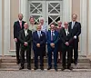 UTDELING AV MEDALJE: Framme f.v. Jim Lid, Oddbjørn Amundsen, Svein Jørn Haugen og Torbjørn Dukane. Bak f.v. Johan D. Cappelen, Lena Dietze, Louise Cappelen, Cathrine Cappelen og Carl Diderik Cappelen.