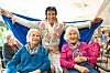 STRÅLANDE MØTE: Dordi Tjønnemark (78) og Bodil Askeland (92) gleda seg stort over å få møte Kjell Elvis og høyre songen hans.