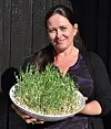Anette Norheim Fredly sår grønnsaker ute i april. Då får ho fine plantar som ho kan plante ut i mai, og betre tid til å drive med andre ting i denne travle månaden.