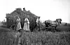 SLÅTTONNA 1935: Under slåttonna slår og klargjer ein graset til vinterfôr. I tidlegare tider vart graset slege, tørka og køyrt inn over eit lengre tidsrom. I dag er det vanlegare å samle slått gras i silo eller rundballar. I gamle dagar vart graset slege med ljå og tørka på marka, eller hesja. Å slå var tungt og tidkrevjande arbeid, men som dette biletet her syner, hadde arbeidet også ein sosial funksjon. Dette biletet er frå 1935 og er teke på jorda ved Suigard Nordbø. Ein skimtar kyrkja rett bak hesten. FOTO: Bø museum v/ Tom ArnesenFOTO: Bø museum v/ Tom Arnesen
