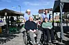 SJEKKA FOLKELIVET: Sveinung Huset (90) og Margit Vestgarden (83) var på trilletur frå Bø sjukeheim med pleiarane Signe B. Flathus og Magne Li i det fine vêret då det var høsthagedag på Bø torg. – Det er så artig å komme ut og sjå på folkelivet i Bøgata og her på torget, sa bebuar Sveinung Huset, og la til at han var glad i å snakke med folk og hadde vore landpostbod på Gvarv i 50 år. – Me er vel litt rånarar me også, men me bråkar ikkje, sa Flathus med eit smil, før dei trilla vidare på sin tur. FOTO: Øystein AkselbergFOTO: Øystein Akselberg
