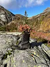BORTKOMEN SKO: Ein solelaus fjellsko låg i stigen opp mot Oksladalen. Den har fått litt pynt i dei fine omgjevnadane. FOTO: Eli Kallestad