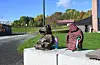 BOBLEJAKKE I SOLA: Då det var idrettsdag på Gullbring idrettsbane for ein av skulane i bygda, kom me forbi desse to figurane som sat og kosa seg i sola på plassen mellom Universitetet og studentkroa. Dei svara ikkje på tiltale, så noko meir veit me ikkje om kven dei var. FOTO: Øystein Akselberg