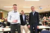 TOGMØTE: Emil Eike, administrerande direktør i Go-Ahead, Erlend Nyheim, driftssjef i Go-Ahead og Arne Bujordet, Bane Nor, på eit møte om tog i Midt-Telemark.