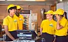 UNG RESSURS: Fire av 300 sesongtilsette. F.v. Ferdows Rezwani, Abdirahman Ali, Andrea Johnsen og Amelia Ingebrigtsen. Abdirahman og Andrea er skiftleiarar på catering, medan dei to andre er medarbeidarar på catering.