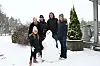 IKKJE SNØGARANTI: Bak f.v. Celina Alfanta Haugland, Thomas Sørlie, Vetle Staver Slettemeås og Malene Haugland Sørlie. Sofie Haugland Sørlie ved sida av snømannen. Han blir kanskje ikkje med på julehygga.