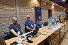 FUNKSJONÆRAR: Under kommunevalet i 2023 var det f.v. Johan Haukvik, Gunne Aarnes og Kirsti Hegna som passa på at alt gjekk rett føre seg i vallokalet på Akkerhaugen.