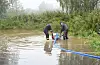 Kjempa med tre pumper for å halde vatnet unna legesenteret