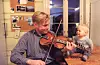 SPELEMANN: Torgeir Straand tek ein slått for vesle Martin, som nok har hørt meir felespel enn svært mange vaksne i Midt-Telemark. Det ser ut til å falle i smak.