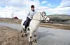 FRIKVARTER: Linn Stordahl Macit bur ved Sandvin i Bø, men rir fjordingen Rimfaks to gonger i veka på Sætersbø. Riding har ho nyleg tatt opp att etter 20 år. – Eg har fire barn, og dette er mitt frikvarter. Det er fint å kome seg ut i naturen, særleg nå, seier Linn.