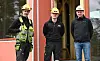 PÅ BYGGJEPLASSEN: Snikkar Henning Rønningsland (f.v.), lærling Jonatan Angre og prosjektleiar Stian Sveinsson i Nordbøåsen bustadfelt.