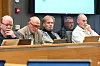 UEINIGE: Torbjørn Lahus (midten) og Glenn Isaksen (t.h.), begge Høgre, var ikkje einige om Ski. T.v. Tormod Helås, Kristeleg Folkeparti, og Nikolai Boye, Høgre. Bak Gunnar Snippen, Fremskrittspartiet.