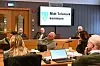 OPPE I FORMANNSKAPET: F.v. rundt bordet: Astrid Staurheim, Bjørn Magne Langkås, Siri Blichfeldt Dyrland, kommumedirektør Per Dehli, Karin Hagen. Bak administrerande direktør Alexander Grønlien (t.v.) i Konsept Pluss AS, Kjell Roar Kaasa frå Allstad og assisterande kommunedirektør Øystein Tveit.