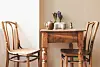 PATINA: Eit gammalt bord som garantert har trengt både olje og ein ny skrue opp gjennom åra, kan vere utgangspunkt for resten av interiøret. Tapet, anten den er einsfarga eller har eit spennande mønster, er ein genial måte å leike med fargepaletten på. Denne patinaen får du ikkje på nye møblar.