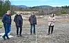 TIL KOMMUNESTYRET: Utval for plan, teknikk og næring har vore på synfaring på Oterholt. Her utvalsmedlemmane Trond Haugen (f.v.) og Peder Rekkedal, grunneigar Knut Moe og prosjektleiar i Greenstat Polar, Viel Jaren Heitmann.