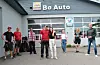 Rådebank sesong to: Bilete er frå siste opptaksdag i sesong to. Her ser me to skodespelarar og mange av dei lokale folka i filmteamet ved Bø Auto. F.v. Martin Arntzen, Vebjørn Bakaas (statist), Ola Rørmark, Ingeborg Førland, Caroline Fosstveit og produsent Knut Inge Solbu. I front Odin Waage (GT) og Maia Christiansen (Hege). Foto: Øystein Akselberg