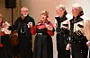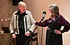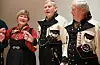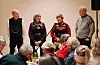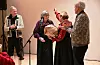 DRIFTIGE KARAR: Grete Prestholt Roligheten (t.v.) og Jorid vale heidra dei to dugnadsfolka Harald Omnes (t.v.) og Kjell Stundal på husfesten på nye Sjodar sundag kveld. FOTO: Øystein Akselberg