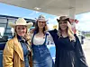 Tre damer i cowboyhattar og cowboystøvlar, og ein stor blå truck, møter oss på Esso-stasjonen i Bø.