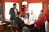 Først av alt serverte museumsstyrar på Evju Bygdetun, Jorid Vale, hyllebærsaft i høge glas. Ho baud òg på fin velkomstsong, som passar seg når fine gåver skal delast ut.