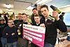 FORNØGDE: Fornøgde elevar og givarar i verkstaden.