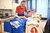 PAKKAR STOR SENDING: Rune Digranes Bøen gjer klar ei større sending av fotballutstyr til Vest-Afrika.